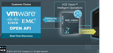 VCE Vision is software with APIs that collects information about Vblock hardware and software components to give insight to other tools and management frameworks. For example VMware vCenter plug-in and vCenter Operations Manager Adapter which should not be a surprise. Customers will also be able to write to the Vision API to meet their custom needs. Let us watch and see what VCE does to add support for other software and management tools, along with gain support from others.
